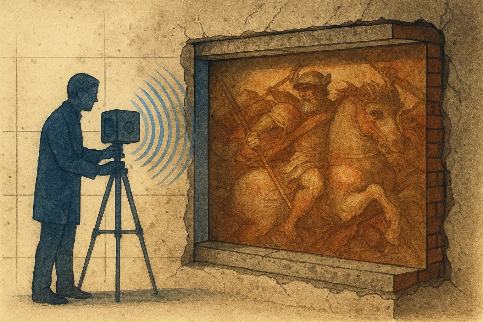 In the intervening decade, significant advances in non-invasive imaging now permit far more detailed analysis of complex stratigraphy within thick masonry structures. Deploying these tools in a controlled, multi-phase investigation would materially improve our understanding of the wall’s internal architecture and the fate of Leonardo’s painting—entirely without touching or disturbing the Vasari fresco.