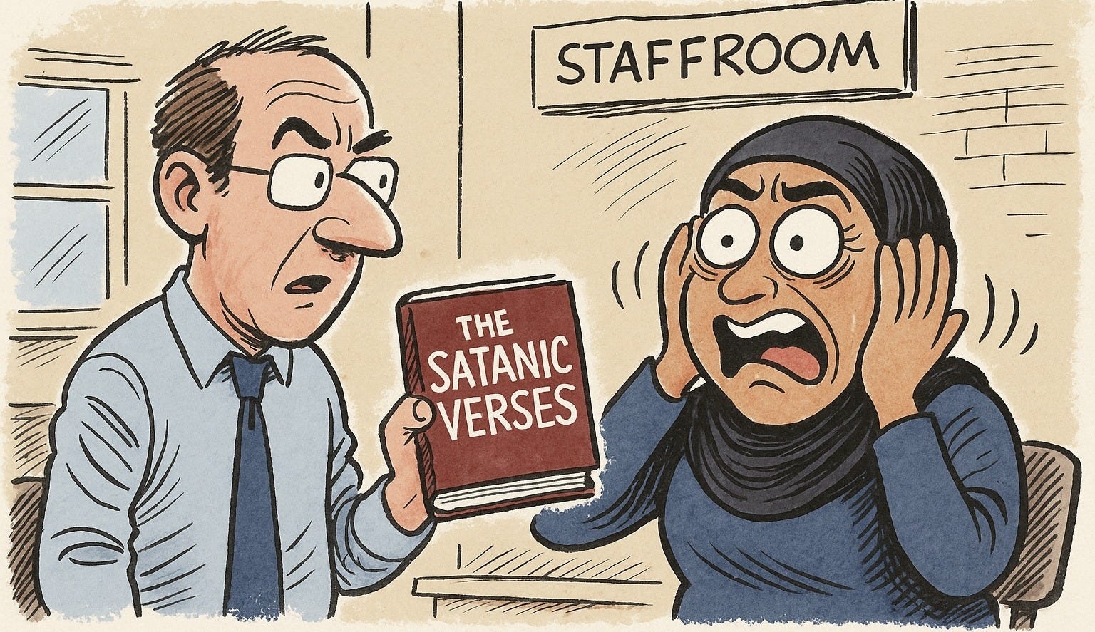 That a novel of this calibre was being discussed in a staff room at all is rather reassuring. During my years as a teacher, I seem to recall that most of the break-time conversations revolved around why certain pupils were so irredeemably evil. I would much rather have exchanged reflections on The Satanic Verses and how it imaginatively reinterprets the foundational myths of Islam. That, after all, was the reason why its author had been issued with a fatwa by Ayatollah Khomeini, then Supreme Leader of Iran.